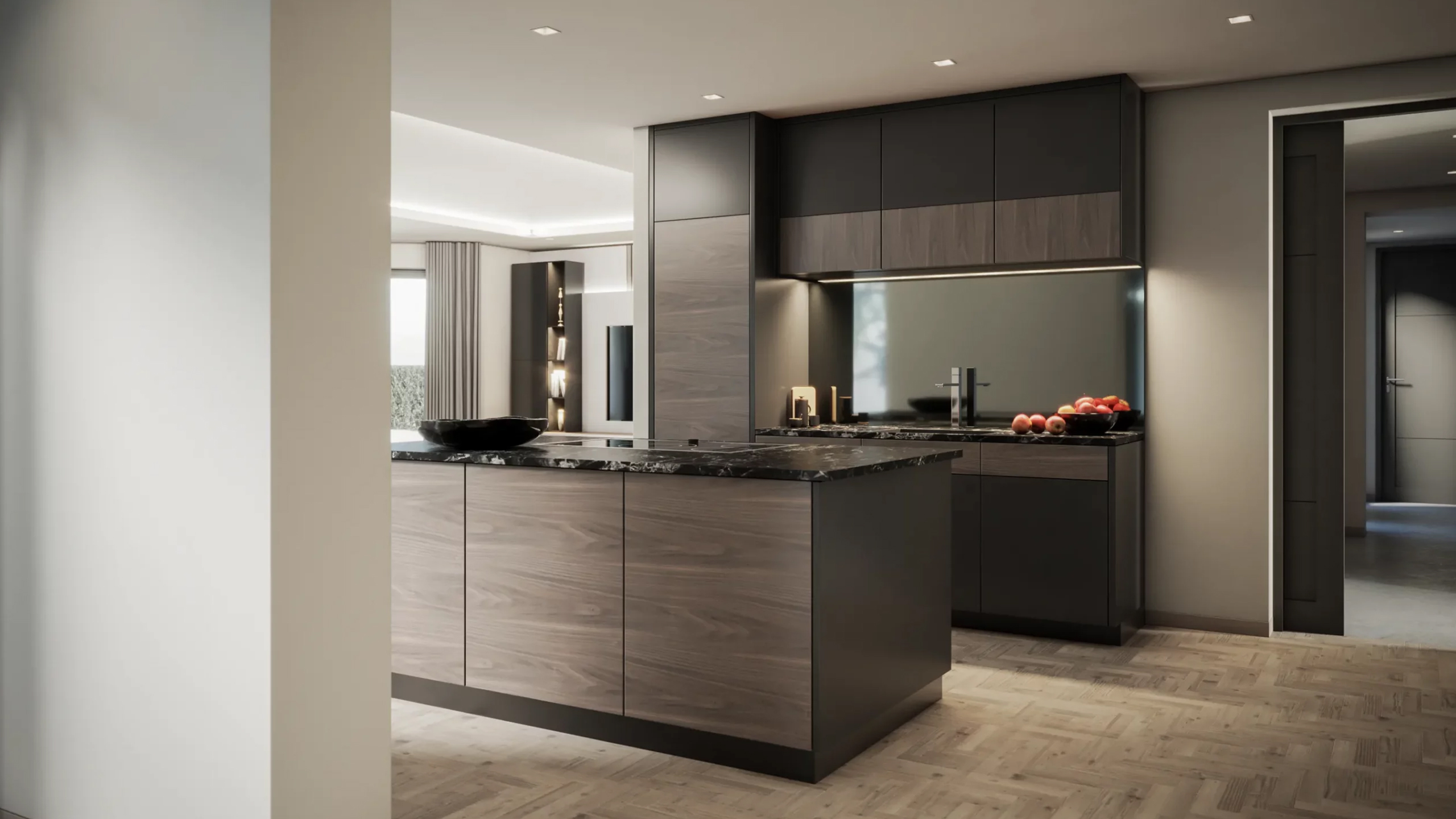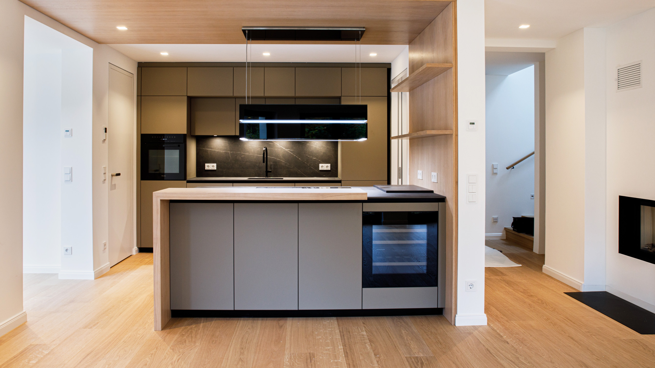 Die fertig eingebauten Kücheneinheiten unterstreichen das gesamtheitliche Wohn-