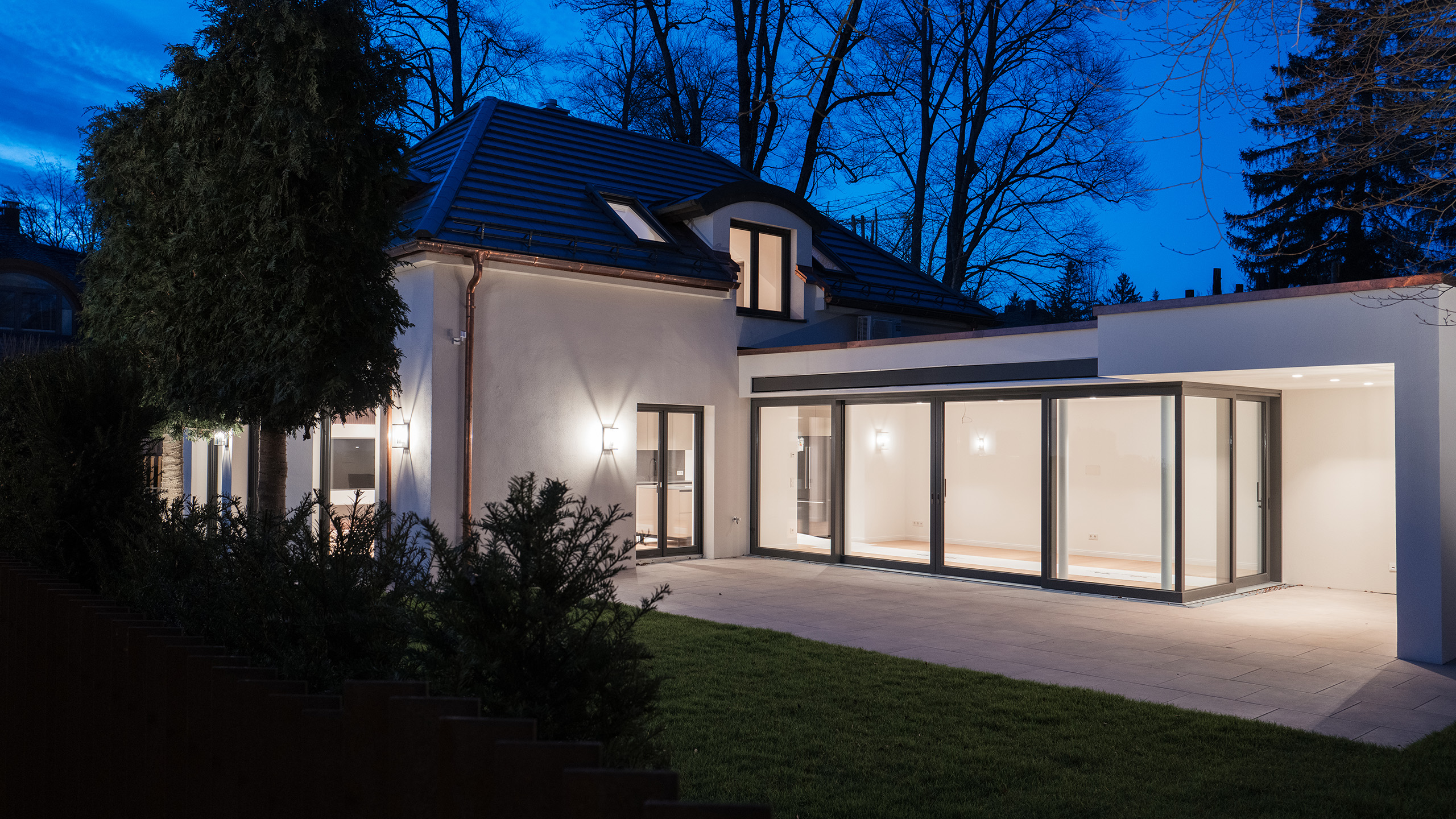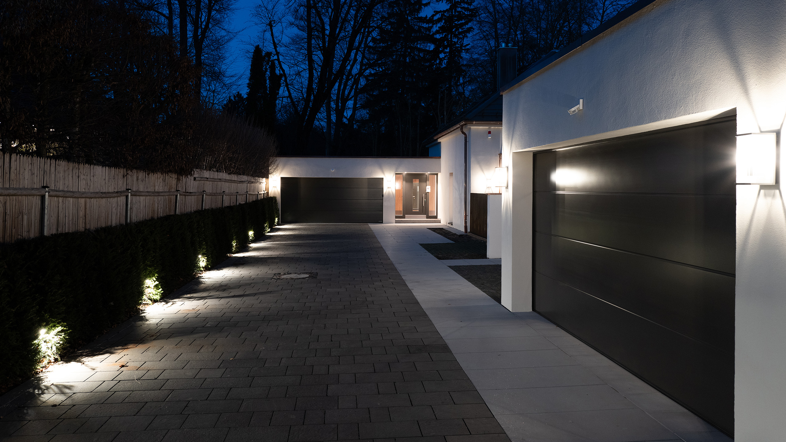 - Garten: Fassadenbündiger Markiseneinbau und stimmungsvolle Außenbeleuchtung