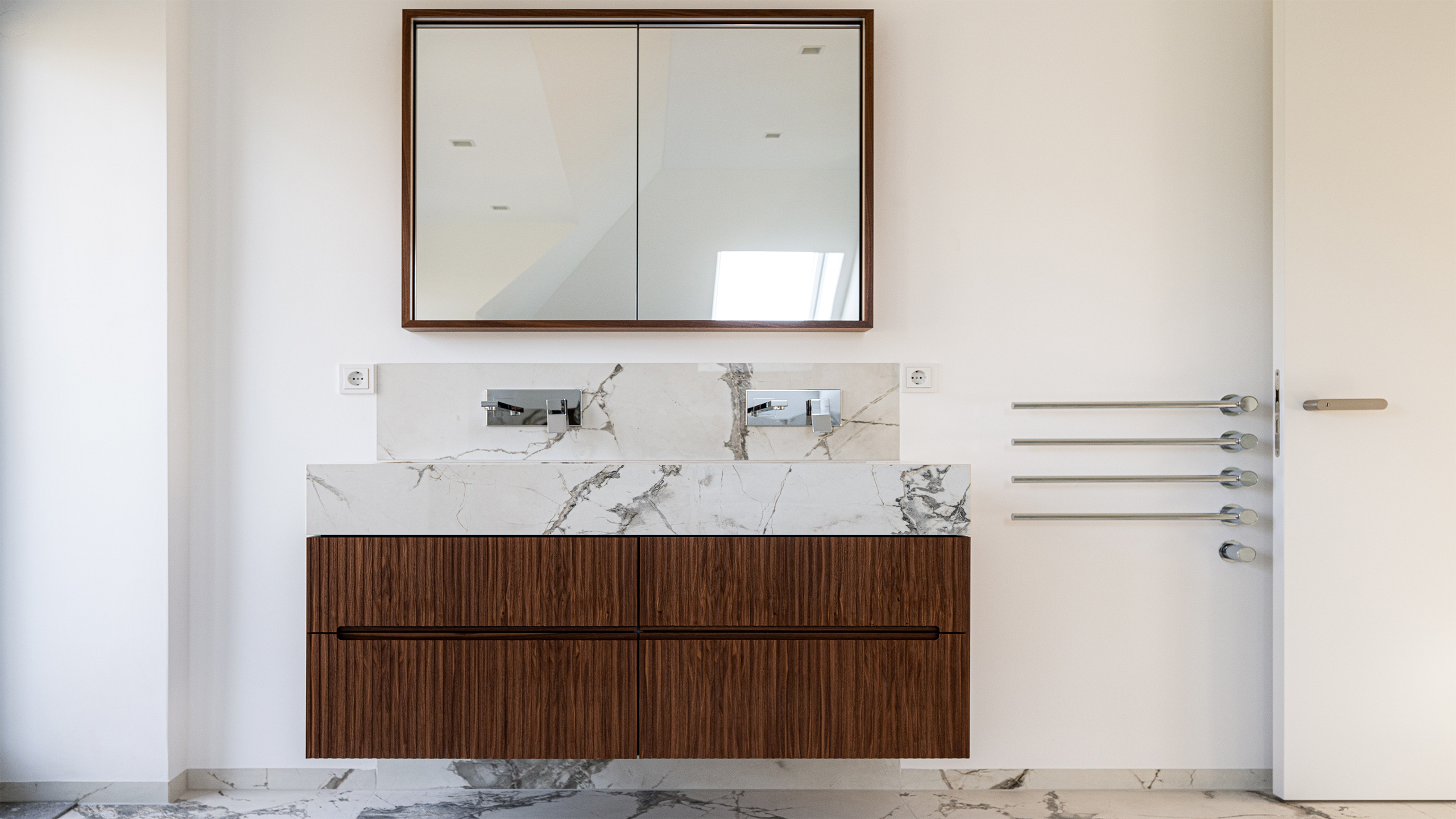 - Badkeramiken von „Villeroy & Boch“, Badarmaturen von „Gessi Rettangolo“
